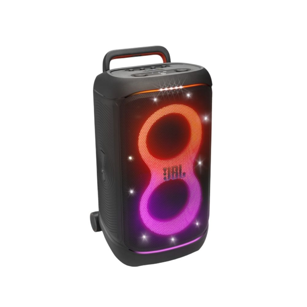 The JBL PartyBox 520 knows how to set the mood with a vibey lightshow and a sound that will get everyone moving and shaking. Whether you're setting up in the backyard, by the pool, or the place your friend just dropped a pin, every move is smooth with the PartyBox 520's grippy handle and wide wheels. With up to 15 hours of playtime, you can host multiple parties before it's time for a recharge. And don't worry about any splashes or spills, this speaker is designed to withstand the results of a great party.
